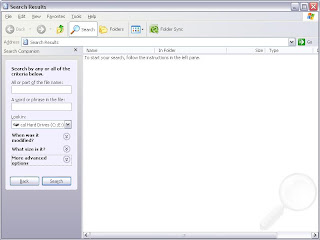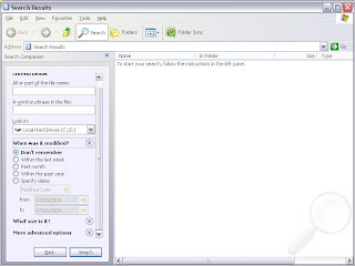 To open windows search, click on the start menu and then click on the search button, or if you don’t have any windows open press the F3 key on your computers keyboard. You may be greeted with a choice of what you want to search for. Click on ‘All Files and Folders’, if not then you will be taken to the following screen.